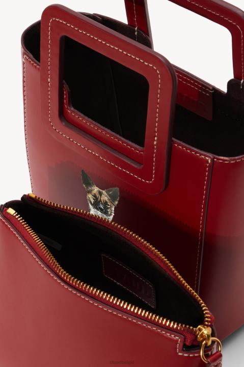 de minishirley leather age heeft een ritssluiting, antieke gouden hardware en suède voering.
