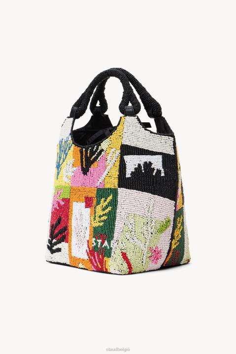 Terug voor het seizoen, de c e bag is een handzame emmertas die perfect is voor zowel overdag als 's avonds. deze stijl heeft een overlopend koraalpatroon met kralen.