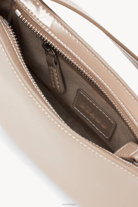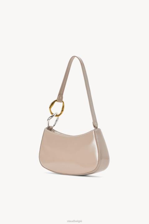 de ollie bag is een mini schoudertasje gemaakt van gepolijst leer. deze stijl heeft een hardware-ontwerp op de riem en een ritssluiting.