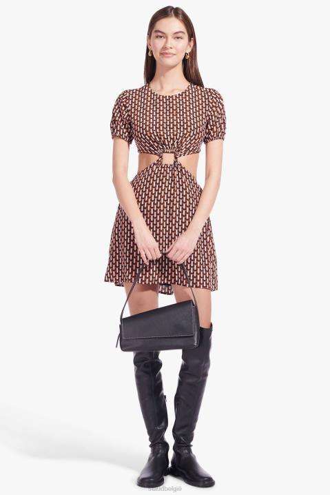 een asymmetrische schoudertas met klepsluiting, de acute tas is voorzien van staud-logoletter-branding en steekzak aan de achterkant, samen met all-over contrasterende stiksels.