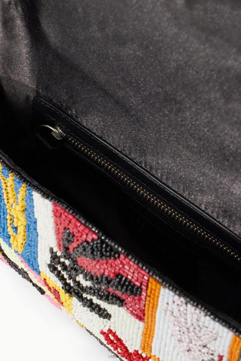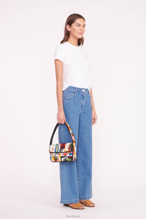 de klassieke handgerolde schoudertas met vegan leren biezen. deze tommy-update heeft een abstract koraalpatroon en een magnetische drukknoopsluiting.