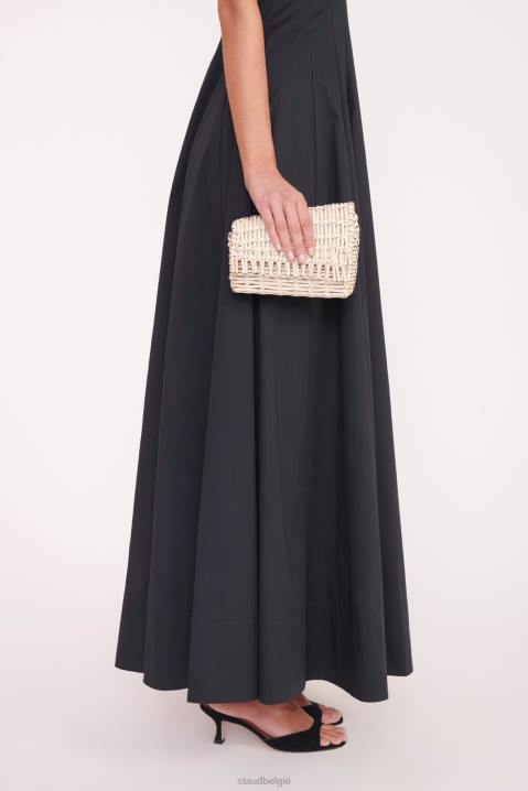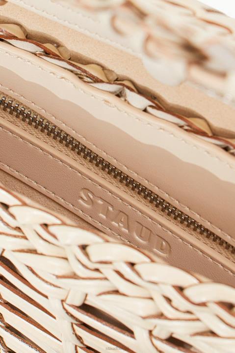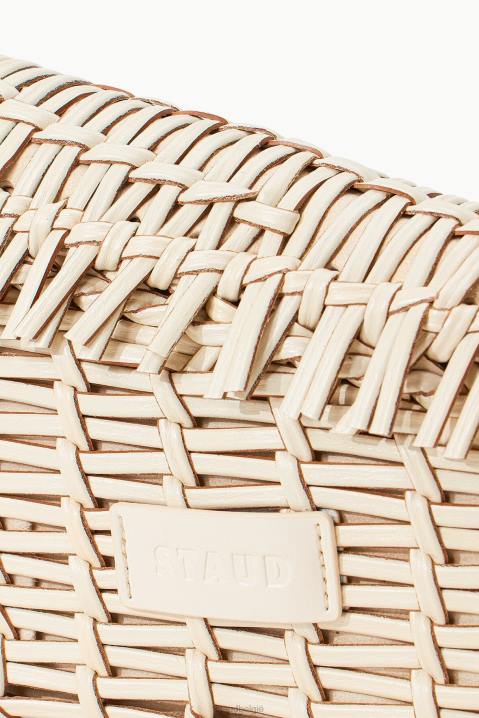 een mini geweven schoudertas met een magnetische drukknoopsluiting. deze stijl heeft een afneembare riem die een converteerbare koppelingsoptie biedt.