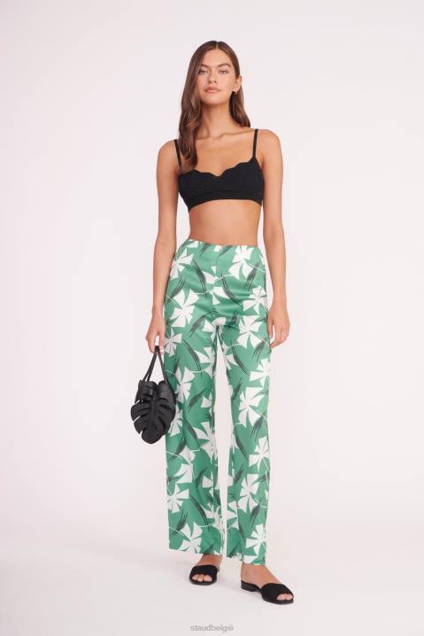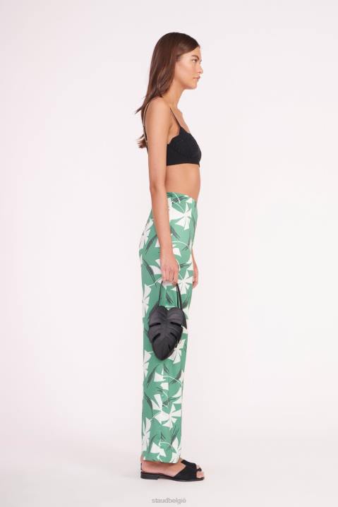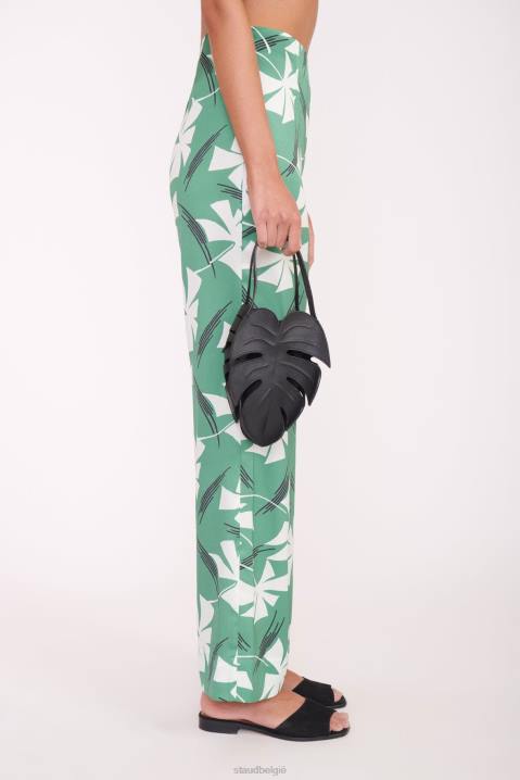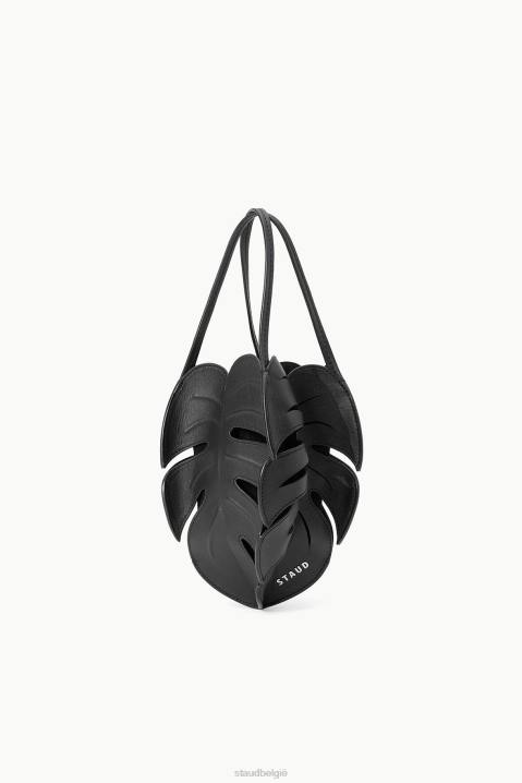een handzame leren tas opgebouwd uit vier bladvormige panelen. de palmtas heeft twee handriempjes en een magnetische sluiting.
