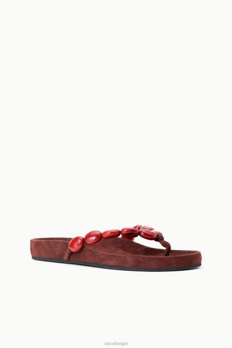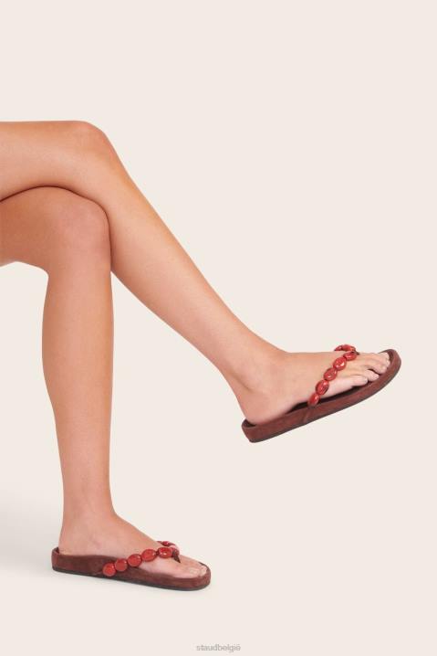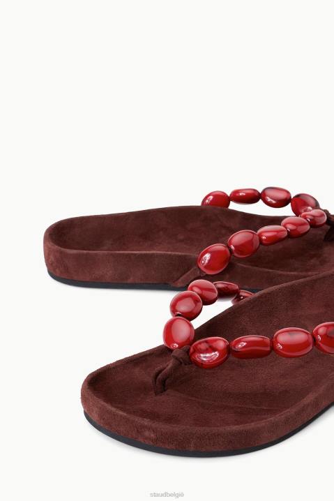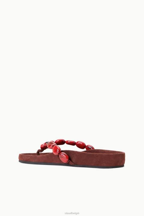 de andre is een voorgevormde teenslipper-sandaal. deze stijl heeft bandjes met kralen en een leren voetbed.