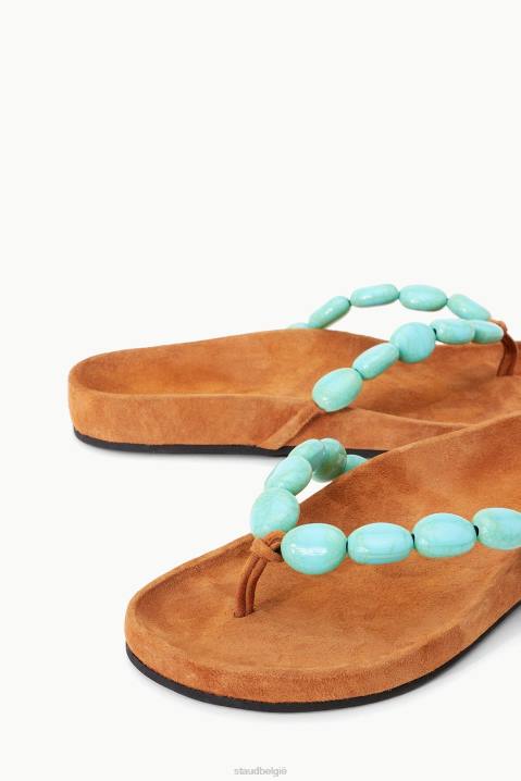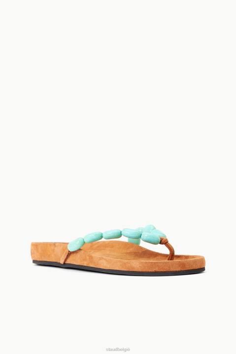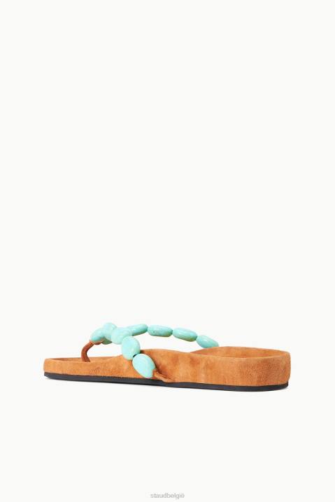 de andre is een voorgevormde teenslipper-sandaal. deze stijl heeft bandjes met kralen en een suède voetbed.