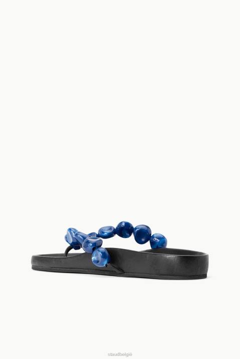 de andre is een voorgevormde teenslipper-sandaal. deze stijl heeft bandjes met kralen en een leren voetbed.