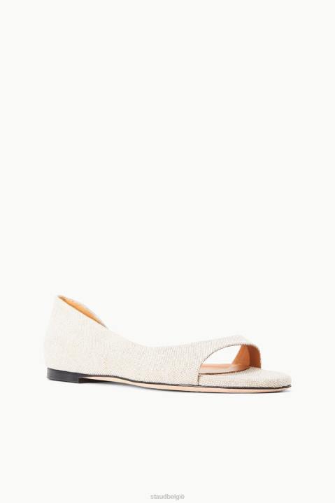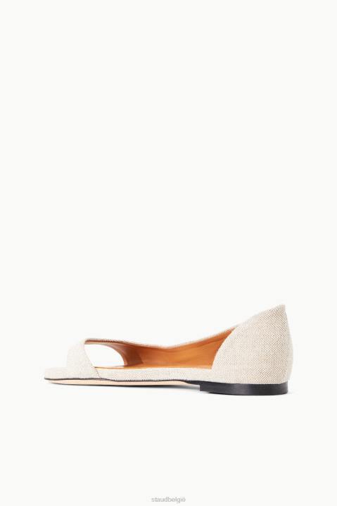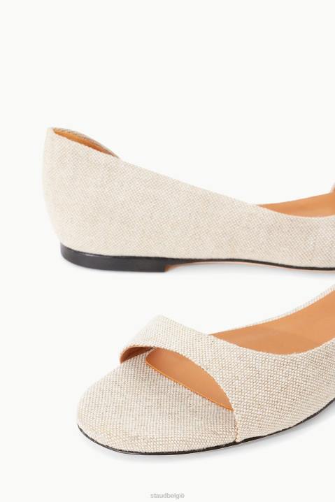 de dominique is een moderne versie van een ballerina met een open teen en een asymmetrisch bandje aan de buitenkant.