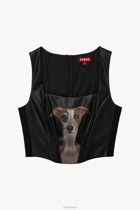 herintroductie van ons bestverkochte korsettopje, nu aanpasbaar! zijn limited edition-stijl is gemaakt van ons kenmerkende veganistische leer, heeft witte doorgestikte details en getailleerde zijnaden.