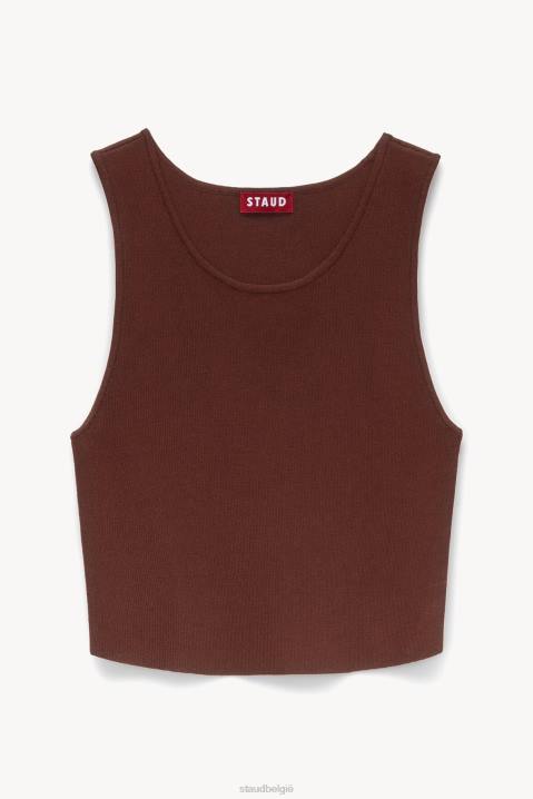 de noor top is een cropped tanktop gemaakt van een compacte gebreide stof. deze stijl kan op zichzelf worden gedragen of als laagje onder een overhemdjack voor koelere temperaturen.