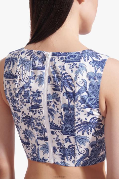 de alice is een cropped topje in korsetstijl. heeft gestructureerde panelen en een ritssluiting aan de achterkant. gemaakt van bedrukt katoenen popeline.