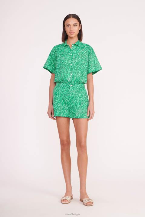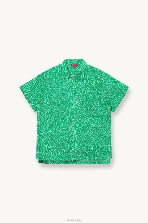 een boxy overhemd met korte mouwen en palmprint. De channing top heeft een opgestikte linkerzak en maakt een coördinerende look compleet in combinatie met de bijpassende zoey short.