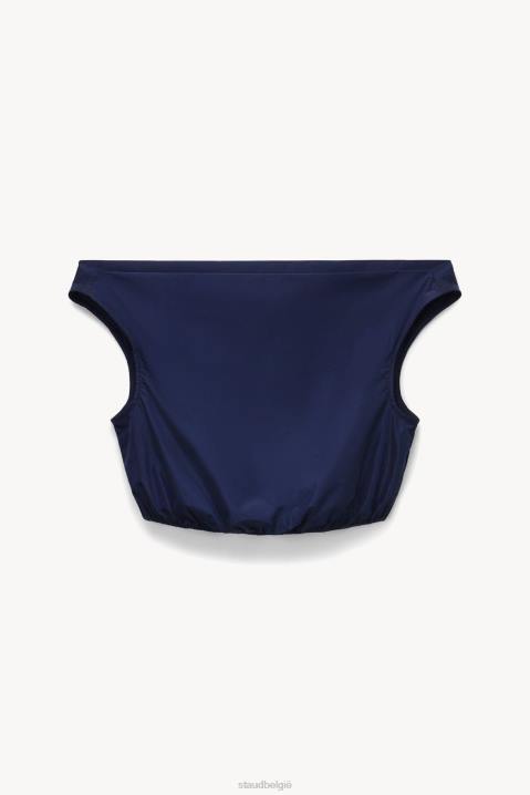 de ria top s a affeta mouwloze top met strikdetail op de rug. hij heeft de mogelijkheid om asymmetrisch of off-shoulder te dragen.