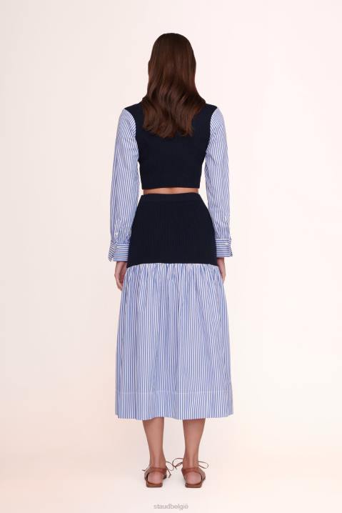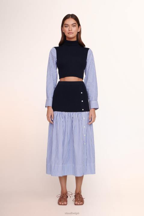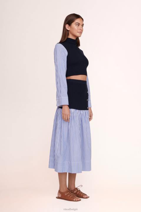 vrouwen kleding marineblauw witte streep STAUD Louisa top 4TZV438