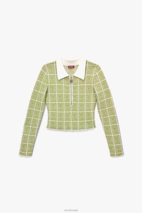 een getailleerde polo met lange mouwen en zichtbare ritssluiting, de wrenly top is voorzien van onze compact gebreide wervelende jacquard.