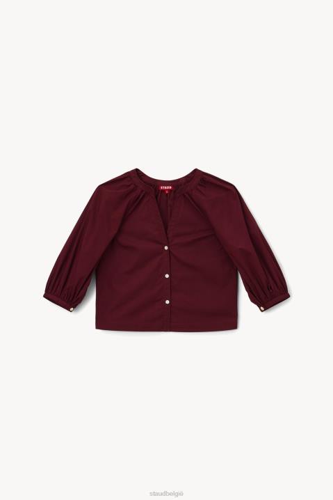 de dille top is een katoenen popeline button-down met 3/4 pofmouwen. deze klassieke top kan het hele jaar door gedragen worden.