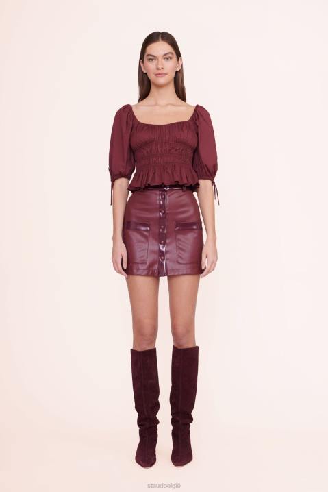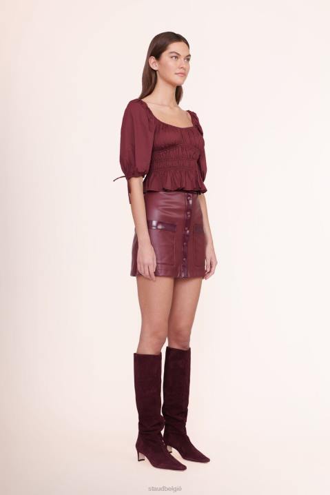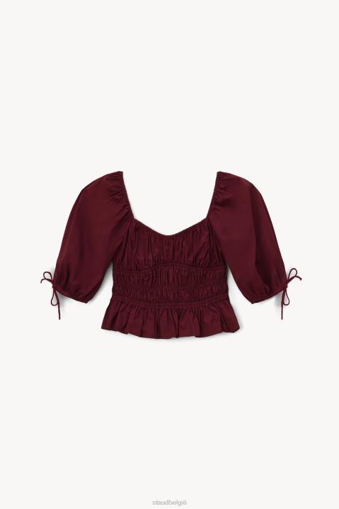 de faye top is een vrouwelijke blouse met 3/4 mouwen. Deze stijl is gemaakt van lichtgewicht katoenen popeline en heeft een gesmokte taille, een vierkante halslijn en een lichte peplumzoom.