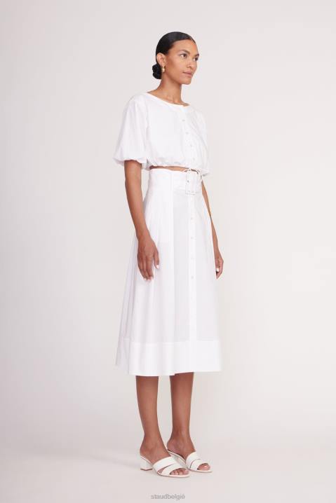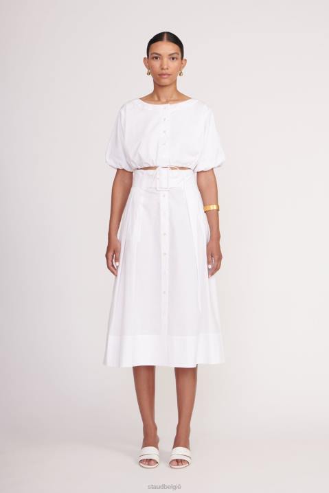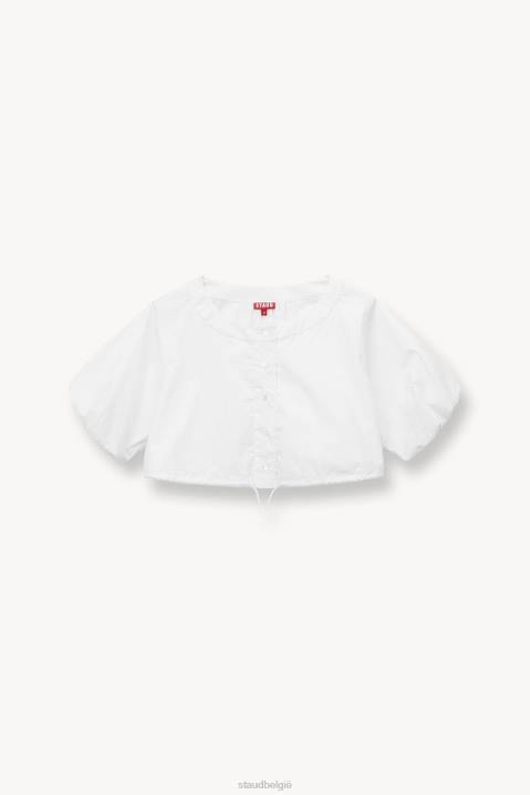 De Elington is gemaakt van stretchkatoen popeline en is een cropped top met knopen, ballonmouwen en verstelbare zoom. dit model maakt een coördinerende set compleet in combinatie met de bijpassende kingsley-rok.