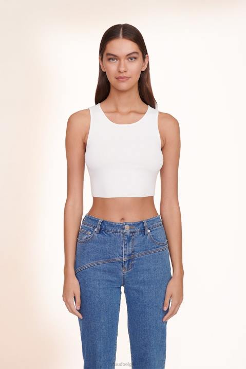 de noor top is een cropped tanktop gemaakt van een compacte gebreide stof. deze stijl kan op zichzelf worden gedragen of als laagje onder een overhemdjack voor koelere temperaturen.