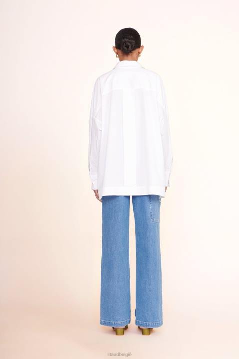 een oversized overhemd met kraag, de payton-top heeft opgestikte zakken en is gemaakt van een katoenen popeline-stof.