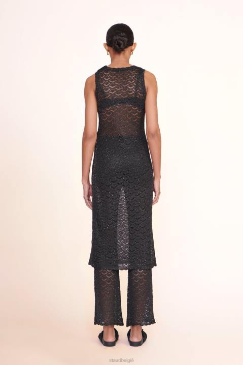een mouwloze tuniek van pointelle-kant met functionele knoopsluiting aan de zijkant en details van pailletten. deze stijl maakt een bijpassende set compleet in combinatie met de adrianna-broek.
