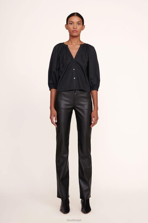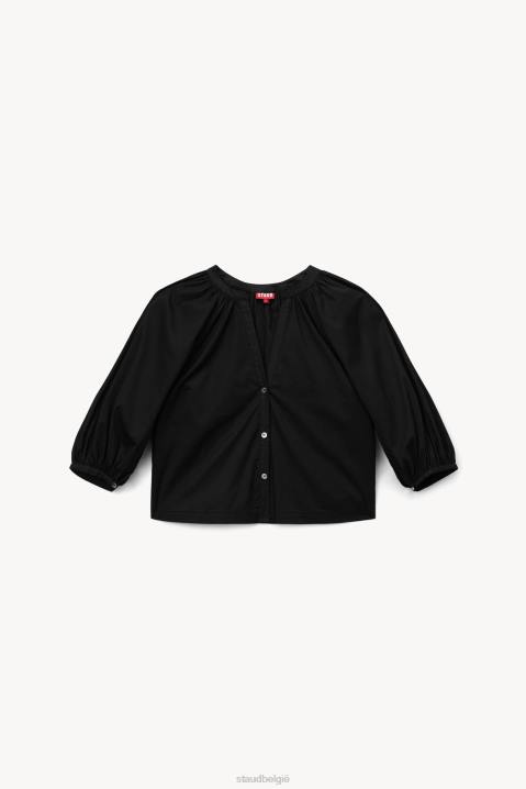 de dille top is een katoenen popeline button-down met 3/4 pofmouwen. deze klassieke top kan het hele jaar door gedragen worden.
